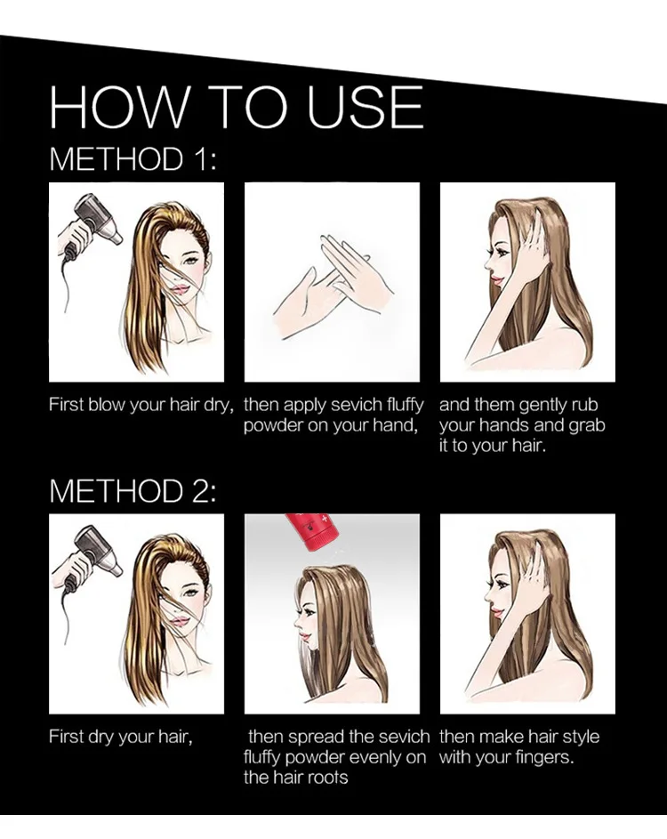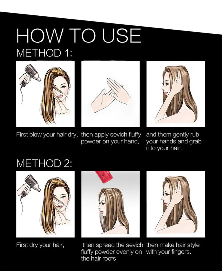 Simply apply evenly to dry hair, focusing on the roots, to create a fluffy, matte, and natural finish.